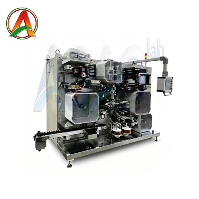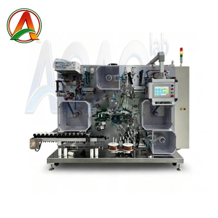 The automatic winding machine is equipped with manual feeding with cathode and anode electrode sheet, separator, and tapes. After completion the feeding, the cathode and anode electrode sheet, separator, tapes which used after winding, and protective tapes (protect the cell) are automatic winding according to predetermined product and process requirements. Detection, automatic tension control, automatic deviation correction, short circuit test and other functions. The equipment has a stable and reliable working state and process guarantee.
