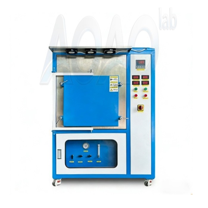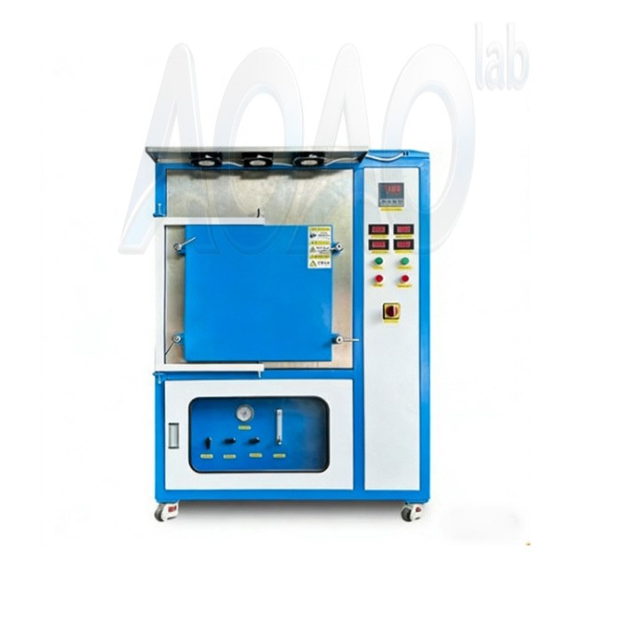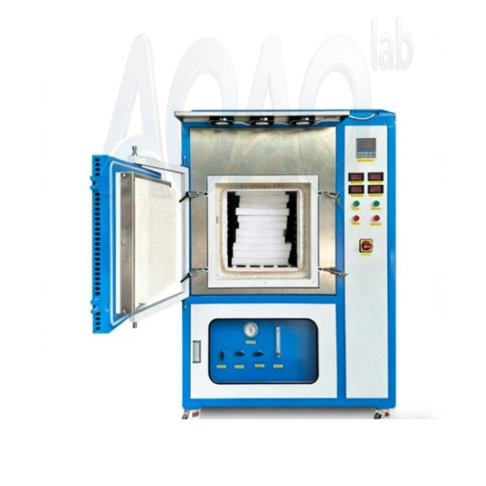 This AOAO-Q1100-504040 atmosphere furnace uses silicon molybdenum rod as heating element, double-layer shell structure and 30-stage program temperature control system