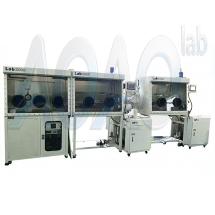 The bottom of the glove box on the left is the controller of the coating instrument, and the right bottom of the glove box on the left can be placed the solar simulator or the purification cabinet of the equipment.